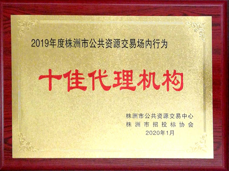 2019年株洲市十佳代理機構