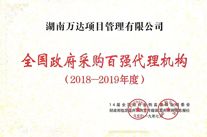 全國政府采購代理2018-2019年度百強代理機構