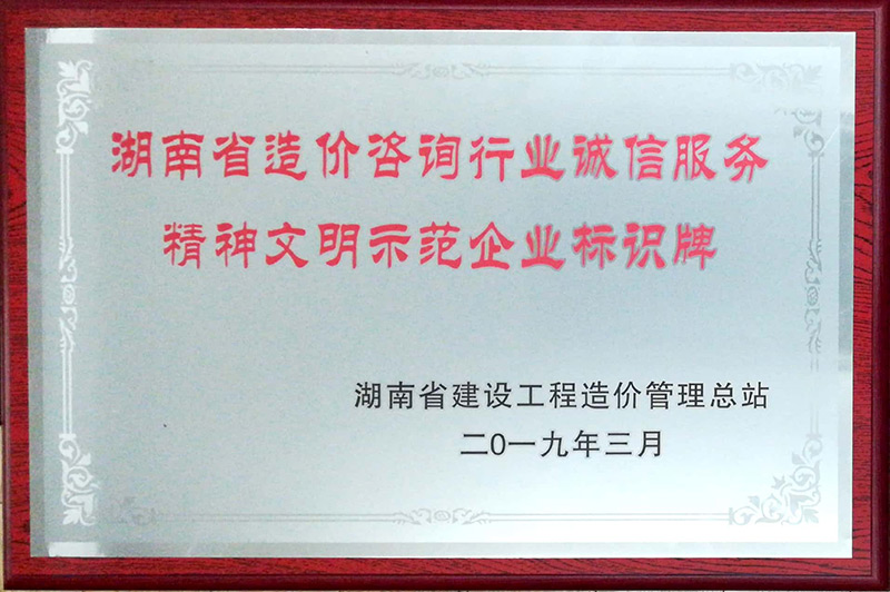 湖南省造價咨詢行業(yè)誠信服務(wù)精神文明示范企業(yè)
