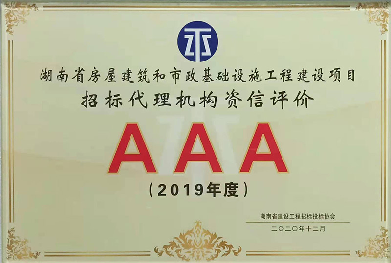 湖南省建設工程招標投標協會信用評價AAA榮譽