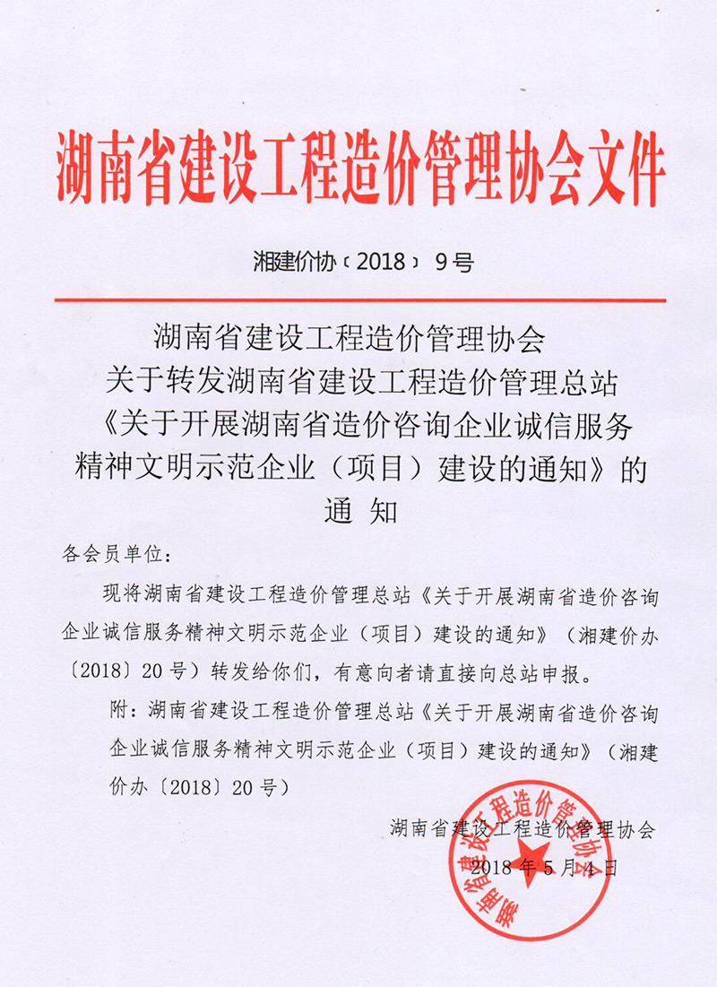 根據湘建價協【2018】20號文精神,將在全省范圍內創建造價咨詢行業誠信服務精神文明示范企業(項目)。昨日下午,我司董事長顏佳鴻召集相關部門召開了專題工作會議,他在會議上指出:我司應當迅速報名、積極組織,為將我司創建為造價咨詢行業誠信服務精神文明示范企業而努力。自我司成立以來,一直秉承“誠信經營”理念,咨詢技術以及道德口碑向來在主管部門、同行當中處于較高水平,故這次誠信服務創建工作,我司一定要竭盡全力爭取,號召全司動員為建設精神文明示范企業而加油!