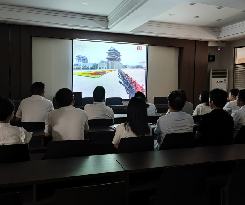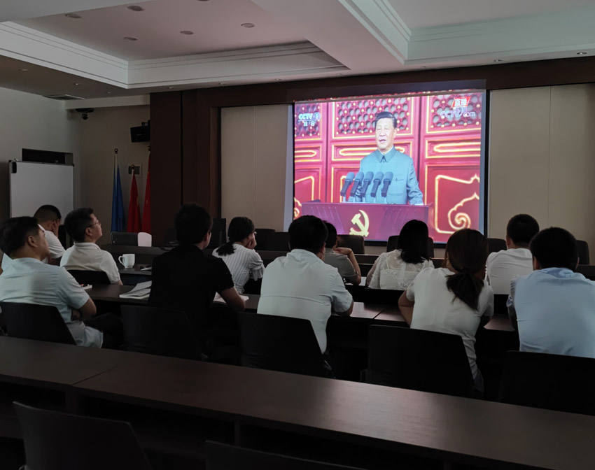 儀式結束后,全體黨員及入黨積極分子在我司520會議室集中觀看了“慶祝中國共產黨成立100周年大會”實況。觀看現場,大家仔細聆聽習近平總書記的重要講話,感受黨的光輝歷程和取得的非凡成就。